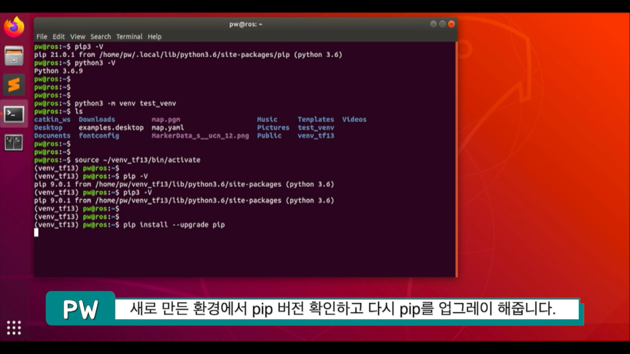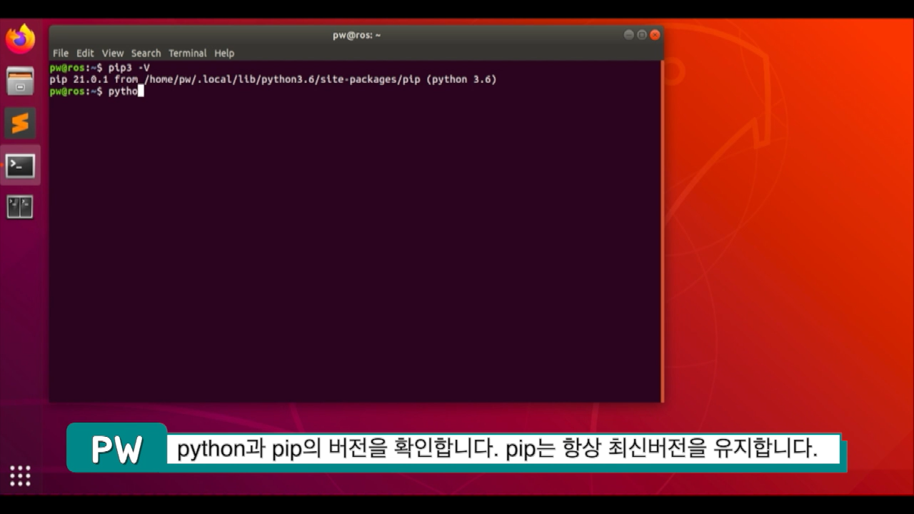 아래 그림에서 python3의 버전이 3.6인건 ubuntu 18.04여서 그렇구요. Ubuntu 20.04여도 괜찮습니다.