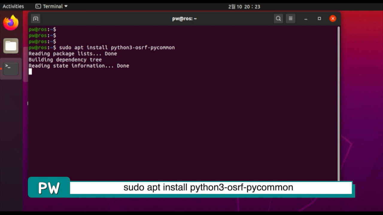 먼저 sudo apt install python3-osrf-pycommon을 설치합니다.