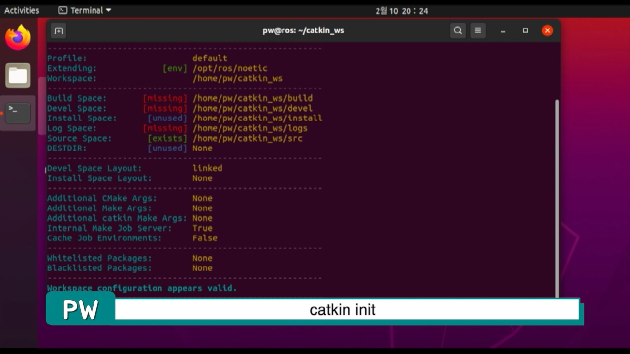 아무런 소스코드가 없어서 그냥 워크스페이스 폴더에서 catkin build