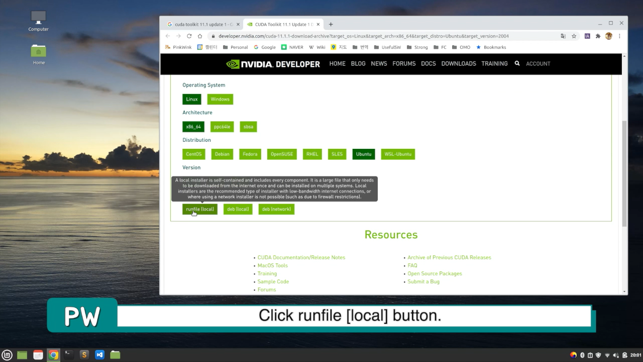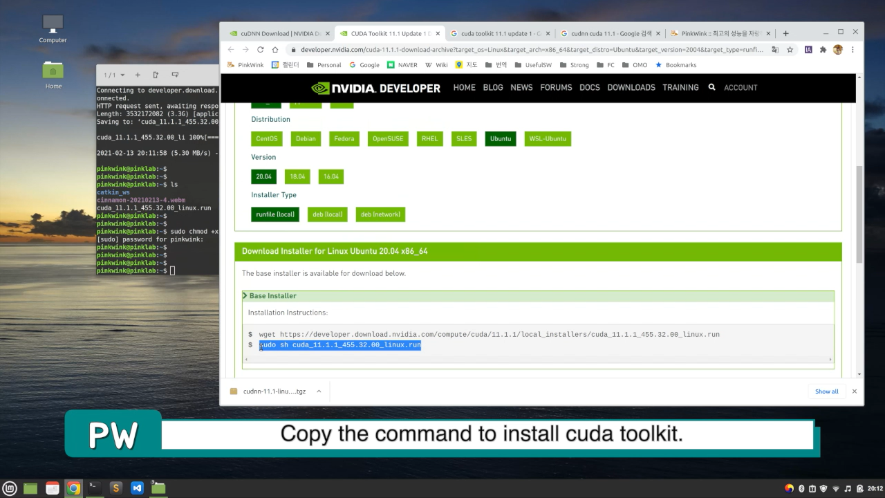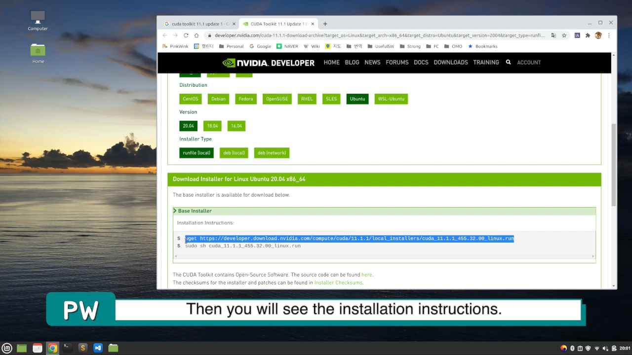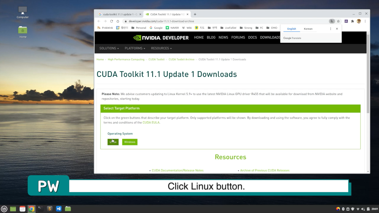 이번에는 우분투 20.04에서 CUDA 11.1과 cuDNN 8.0.5를 설치하고 이어서 Tensorflow 2.4를 설치하는 과정을 설명하려고 합니다. 화면은 이미 눈치를 채셨을 수도 있지만, 우분투 20.04에 대응하는 Mint 버전인 Mint 20.1 Ulyssa에서 저는 진행했습니다. Ubuntu Focal과 Mint Ulyssa는 거의 동일하다고 생각하셔도 됩니다.