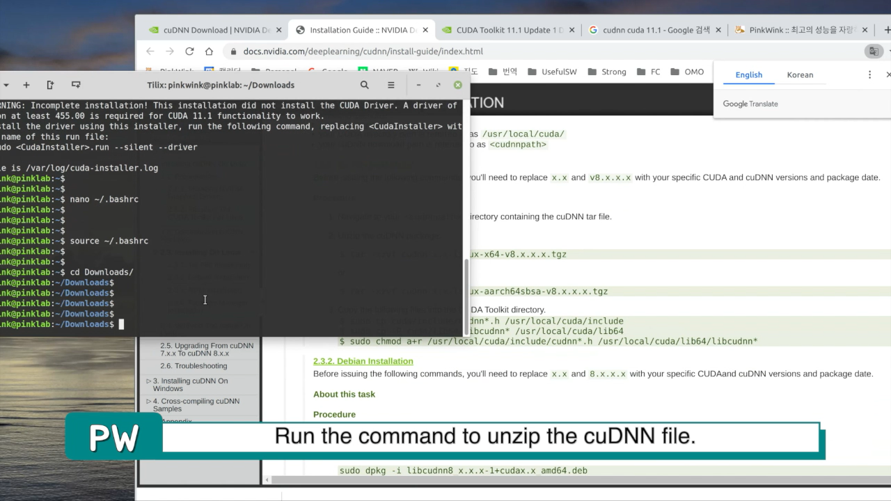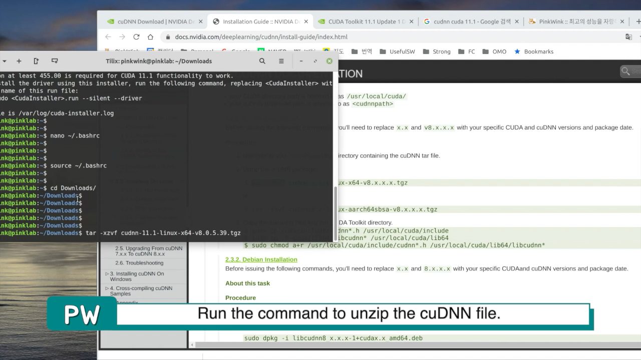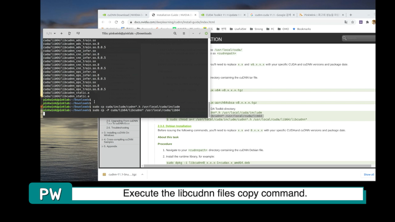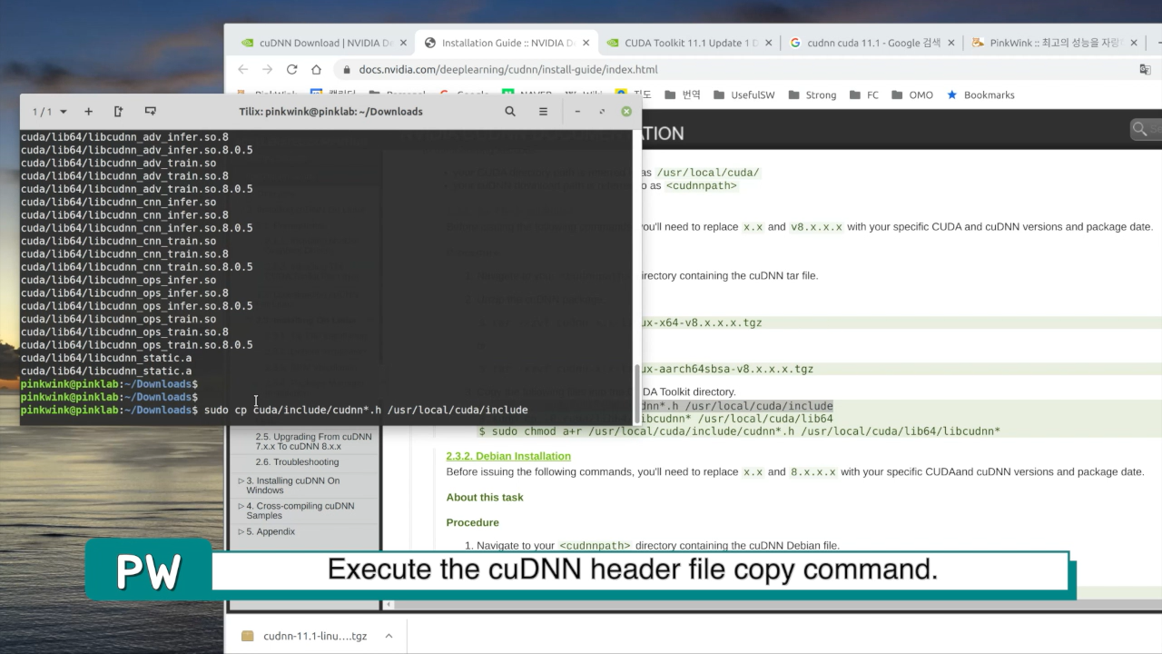 libcudnn 파일들을 복사하는 명령을 카피해서 실행합니다.^^