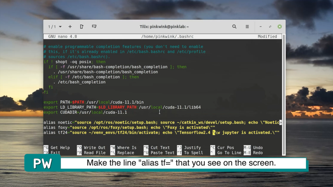 위 화면에 보이는 alias tf24라고 시작하는 줄을 입력해 둡니다. 이제 터미널에서는 앞으로는 tf24라고 명령을 주면 됩니다.