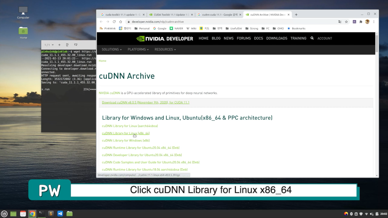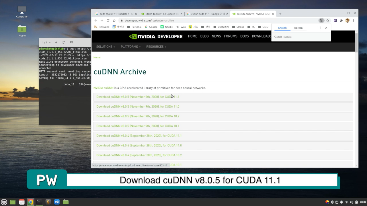 cuDNN은 8.0.5 버전이고 CUDA 11.1 용으로 받습니다. cuDNN은 왜 , 도대체 왜 그러는지는 모르겠는데 로그인을 해야합니다.ㅠㅠ.