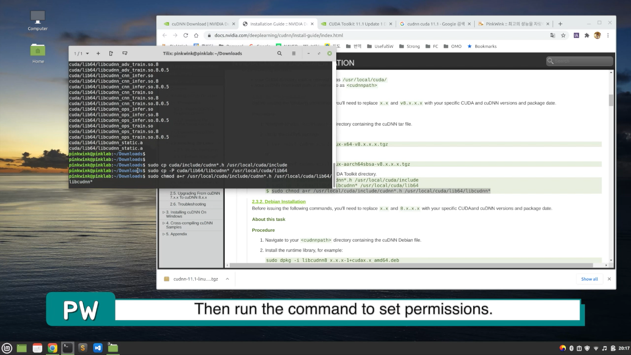 cuDNN 헤더 파일을 복사하는 명령을 실행하고