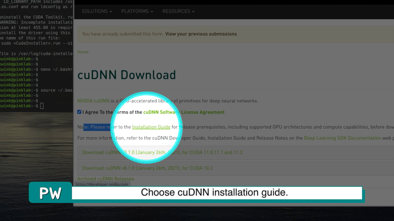 cuDNN을 다운로드 받던 페이지 상단 어디를 뒤져보면 installation guide가 나타납니다.^^. 그걸 클릭합니다.
