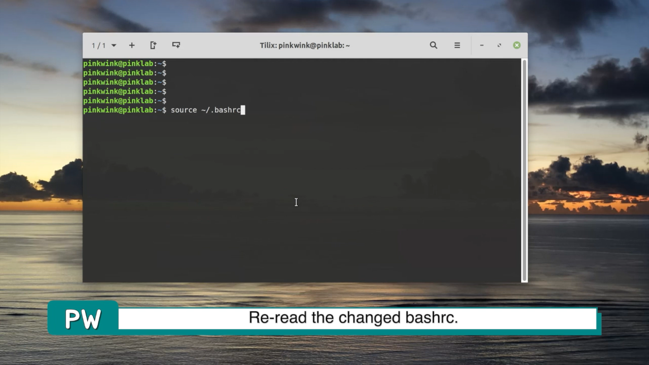 터미널을 껐다 켜든지, 혹은 source로 다시 bashrc를 읽으면 됩니다.