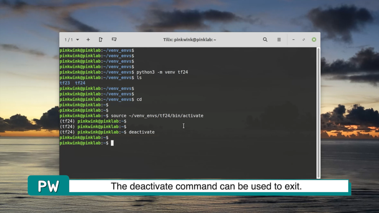 환경에서 빠져나올때는 deactivate 명령을 사용하면 됩니다.