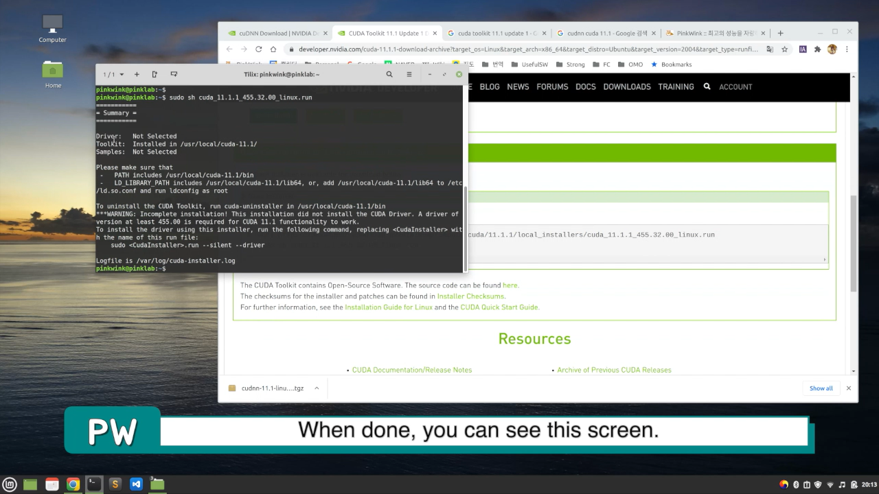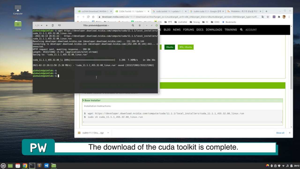 이번에는 우분투 20.04에서 CUDA 11.1과 cuDNN 8.0.5를 설치하고 이어서 Tensorflow 2.4를 설치하는 과정을 설명하려고 합니다. 화면은 이미 눈치를 채셨을 수도 있지만, 우분투 20.04에 대응하는 Mint 버전인 Mint 20.1 Ulyssa에서 저는 진행했습니다. Ubuntu Focal과 Mint Ulyssa는 거의 동일하다고 생각하셔도 됩니다.