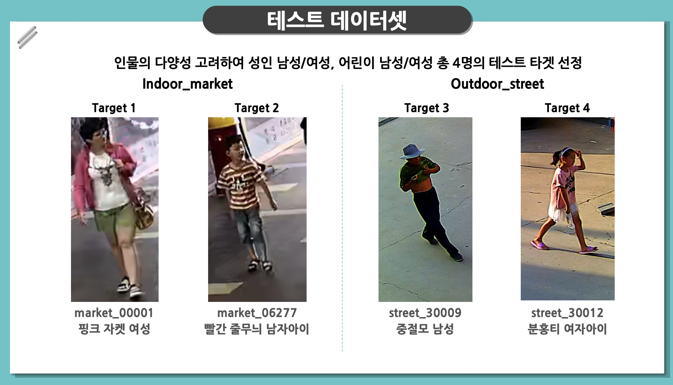저 사람들을 최소의 영상클립으로 학습하고, 그들이 어디에 있는지를 찾는 주제입니다.