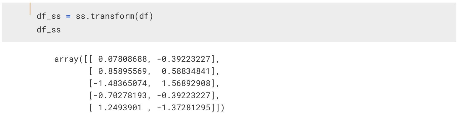 Standard Scaler를 불러서, df를 기준으로 fit을 하면,