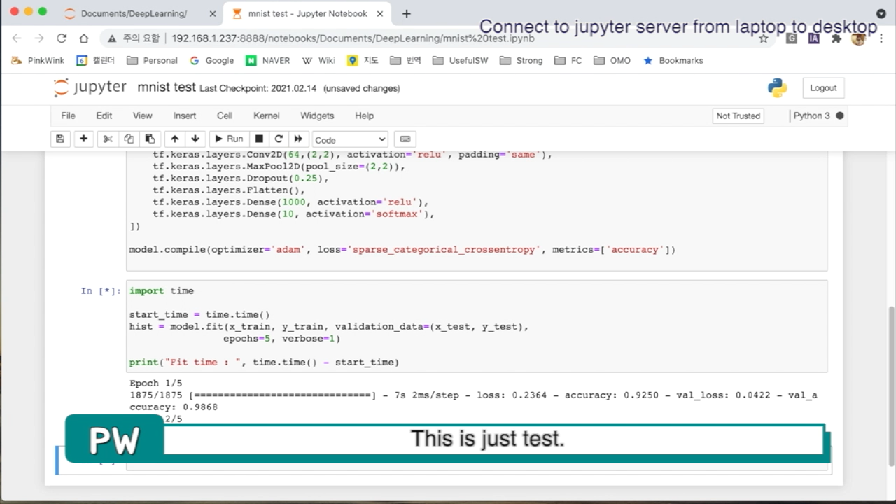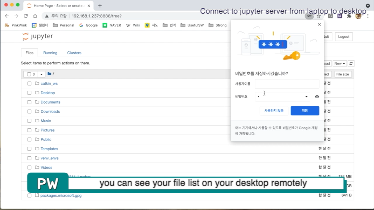 아무튼 그렇게 세팅한 저 데스크탑은 리눅스를 세팅하고 원격으로 사용할 건데요. Jupyter notebook을 데스트탑에서 기동하고, 제 노트북에서 원격으로 접속하려고 합니다^^
