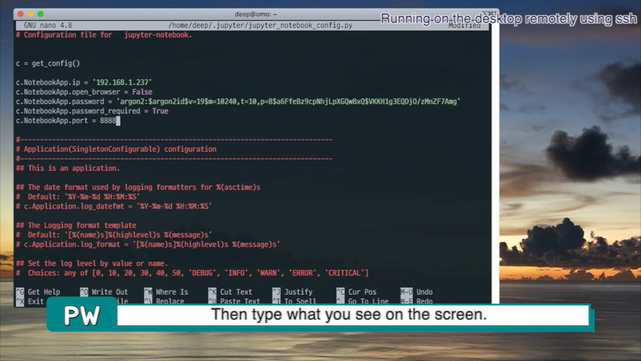 이제 에디터로 jupyter_notebook_config.py를 편집합니다. 저는 nano를 사용합니다.