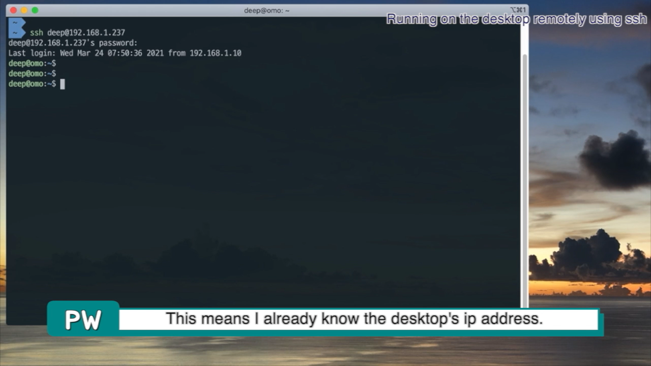 이제 ssh로 원격으로 데스크탑에 접근을 완료합니다.