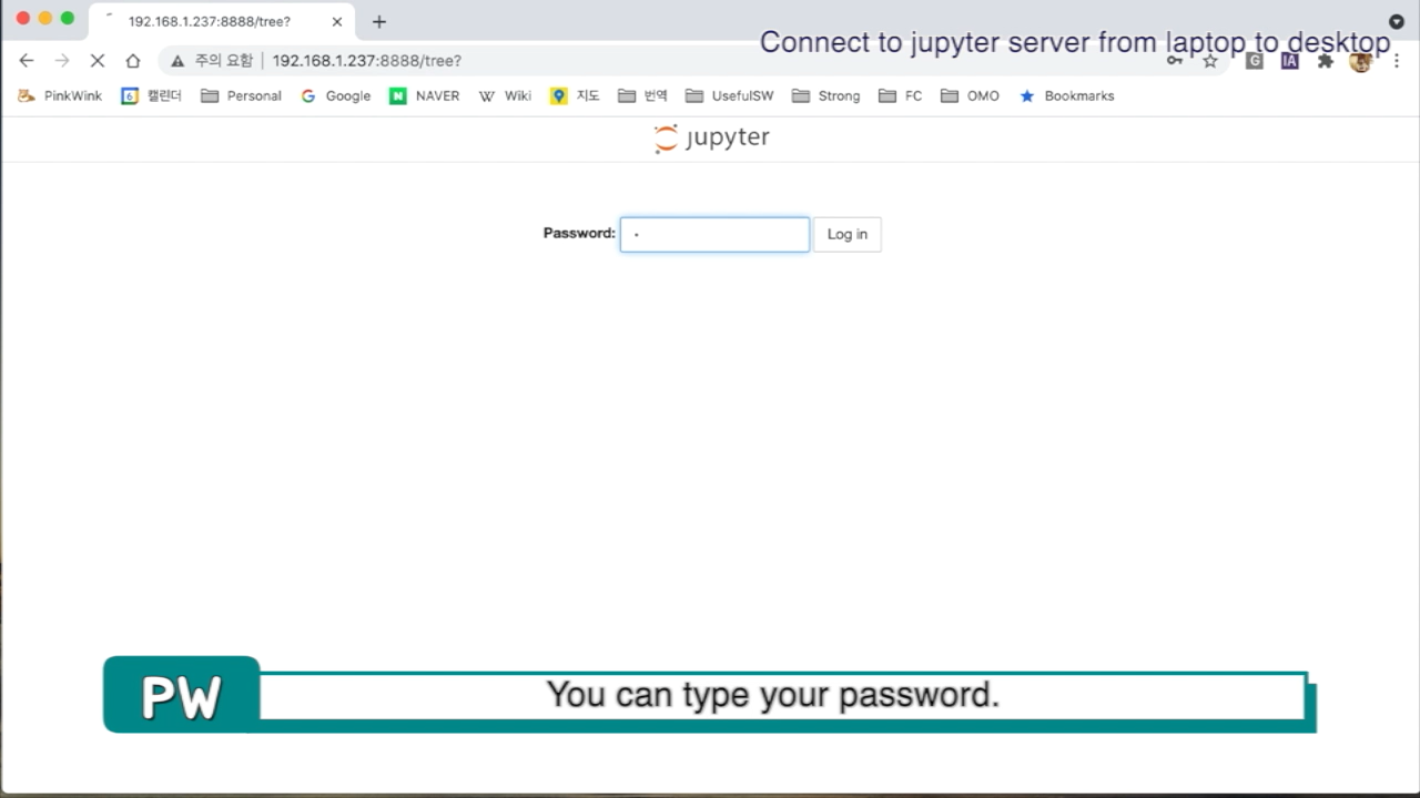 이제 원격으로 접속할 제 노트북에서 웹브라우저를 열고 아까 그 주소를 입력합니다.