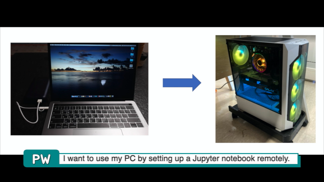 아무튼 그렇게 세팅한 저 데스크탑은 리눅스를 세팅하고 원격으로 사용할 건데요. Jupyter notebook을 데스트탑에서 기동하고, 제 노트북에서 원격으로 접속하려고 합니다^^