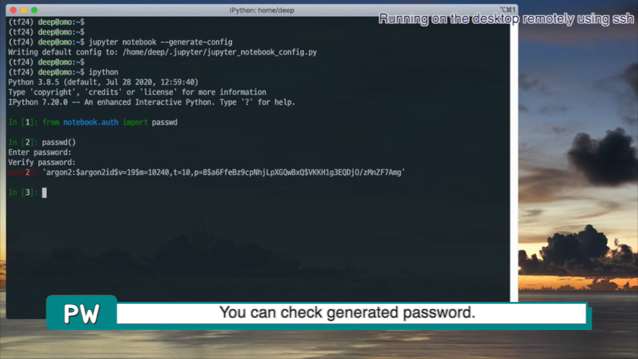 데스트탑에서 위 그림에 있는 jupyter notebook --generating-config를 실행합니다.
