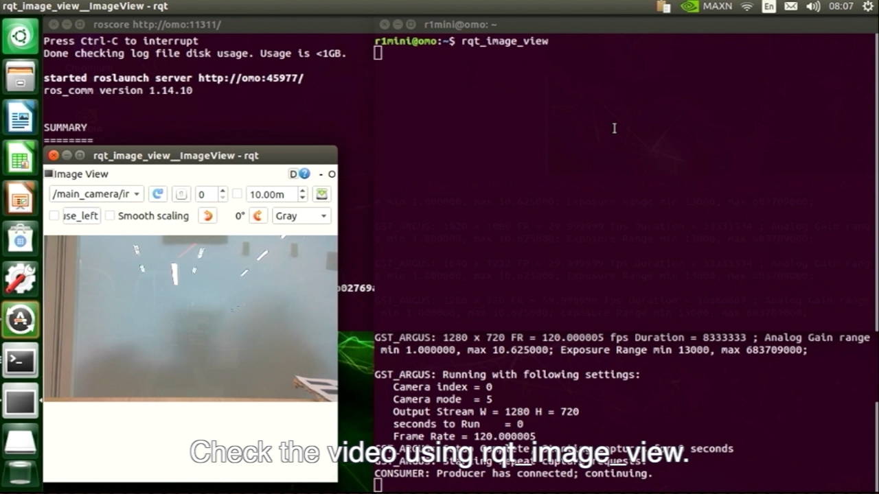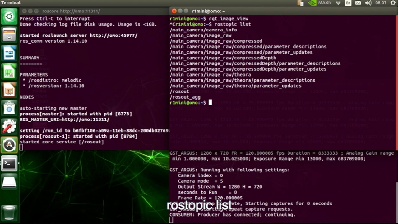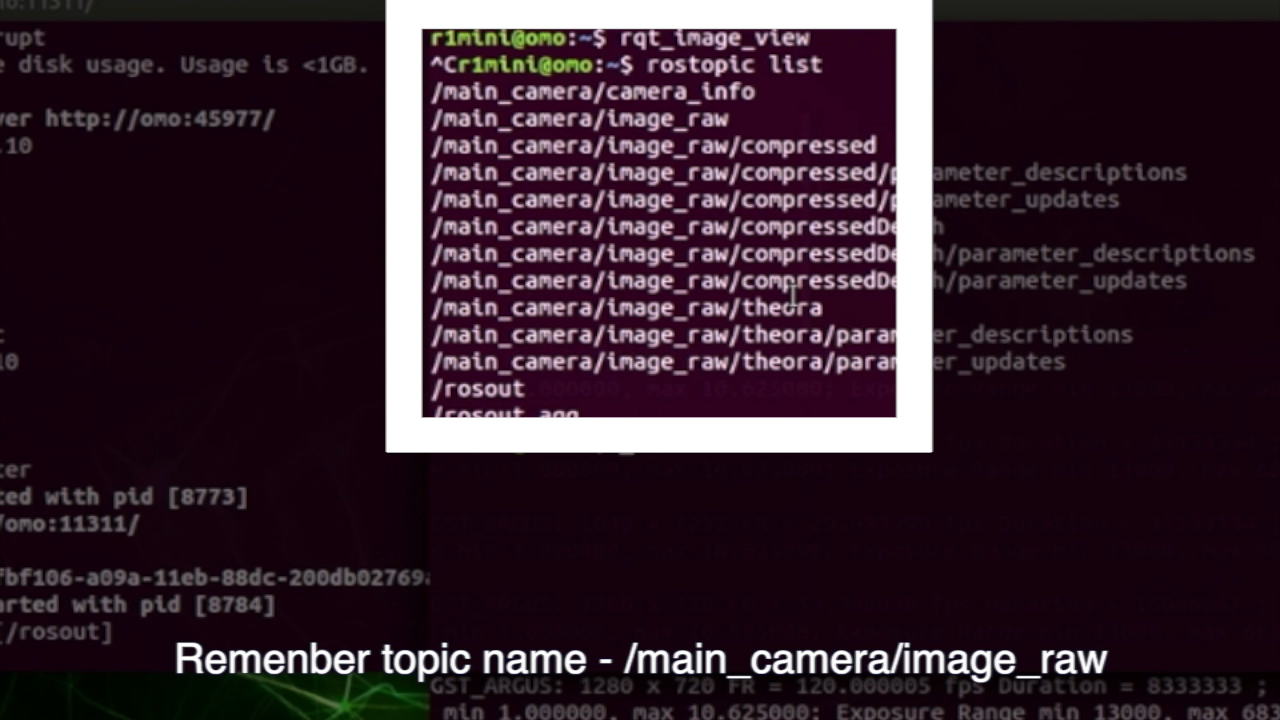 제 경우는 jetson 카메라를 실행했기 때문에 /main_camera/image_raw가 토픽 이름입니다.
