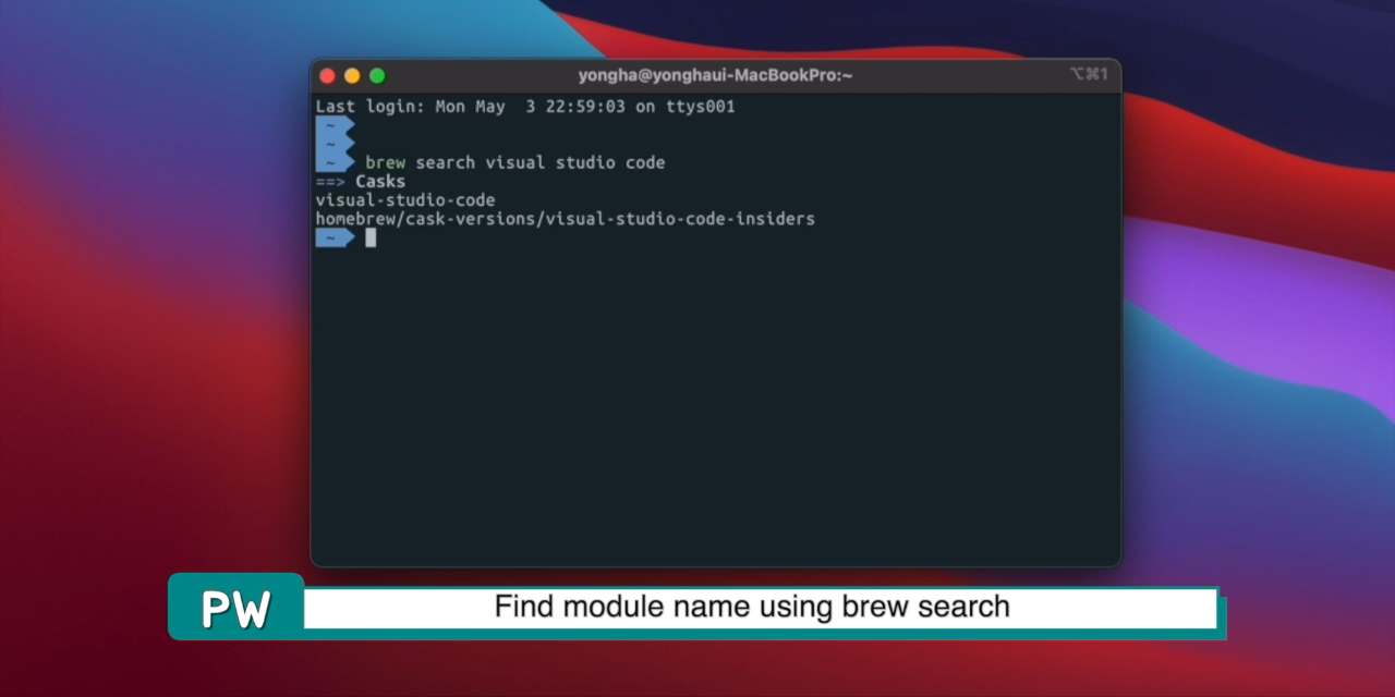 brew로 vscode를 설치하기 위한 이름을 찾으려고 search 옵션으로 검색해보면 visual-studio-code라고 되어 있네요.