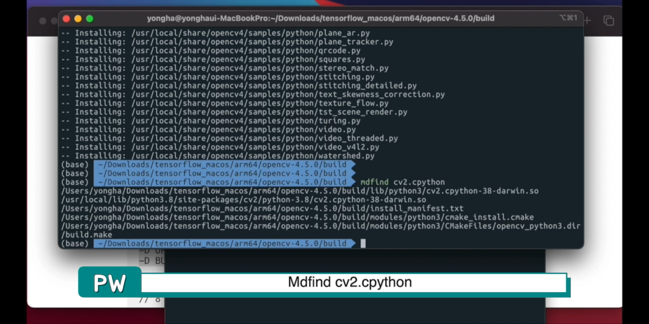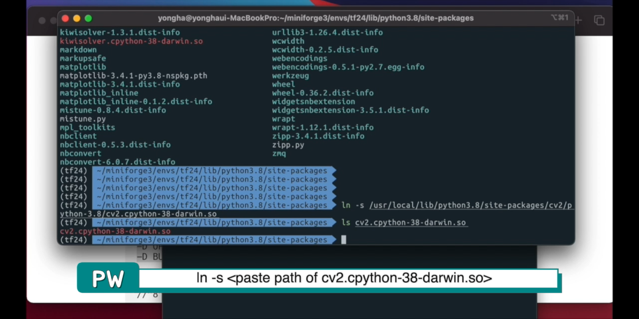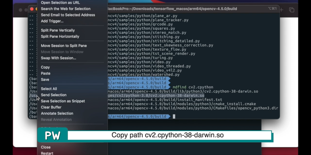 경로를 확인해서 cv2.cpython-38-darwin.so 파일의 경로를 복사한 후~