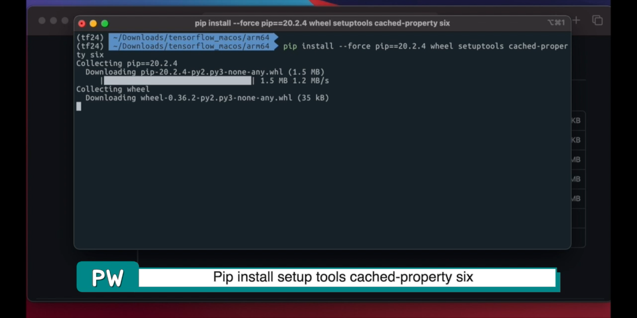 음.. 이부분은 조금 애매한데 일단 아래에 제가 참조한 사이트에서 pip 버전을 20.2.4로 고정해서 설치를 진행하고 있습니다. 일단 저도 그래서 좀 이전 버전의 pip로 강제로 진행했습니다. 일단 위 그림처럼 wheel, setuptools, cached-property, six를 설치합니다.