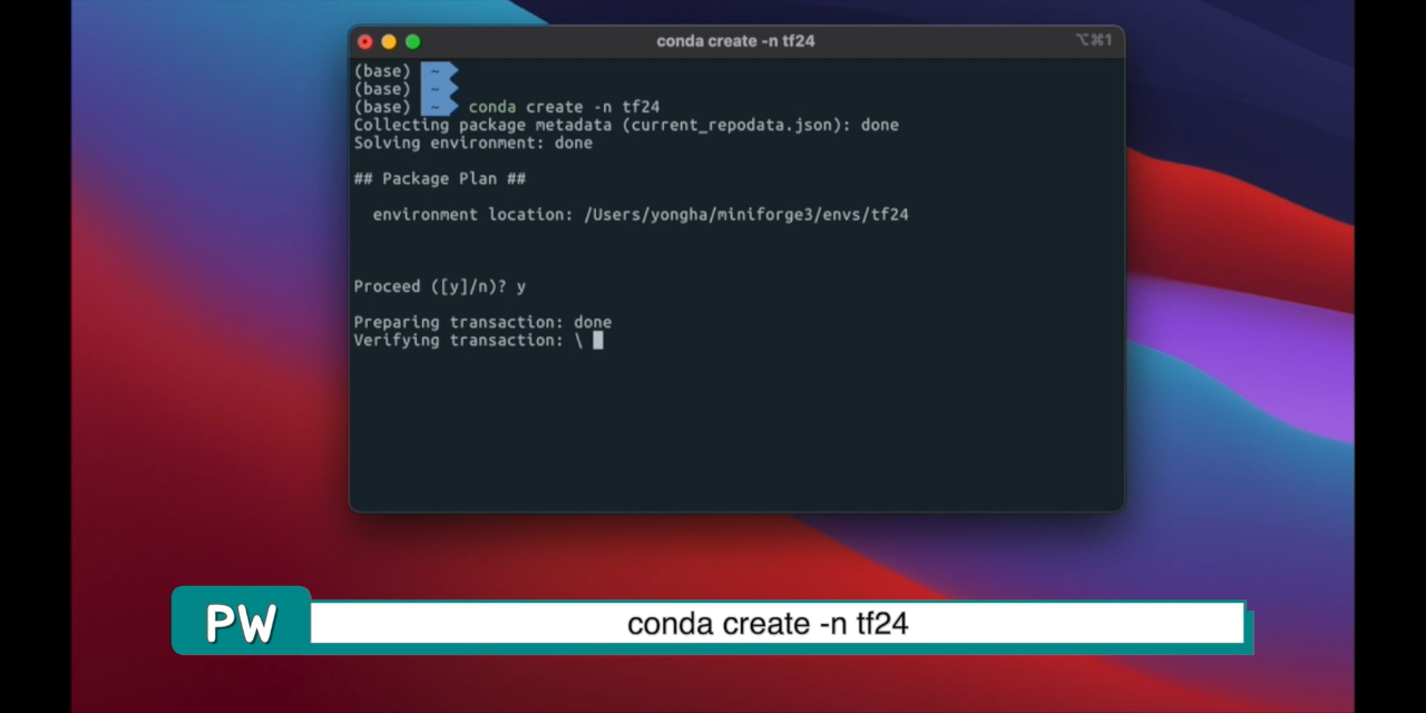 이제 conda create -n tf24 라는 명령으로 conda 환경을 tf24라는 이름으로 새롭게 하나 만듭니다.