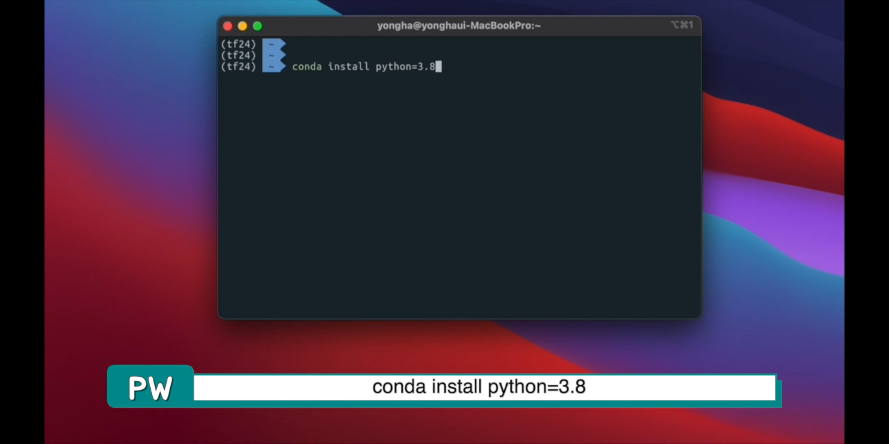 그리고 tf24라는 환경에서 python을 3.8 버전으로 설치합니다.