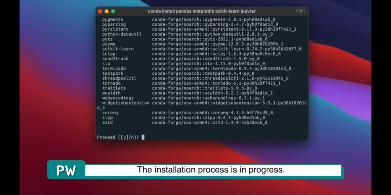 그리고 conda install 명령으로 matplotlib, scikit-learn, jupyter를 설치합니다.