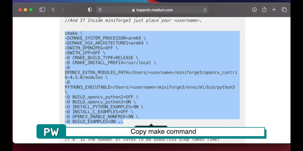 아까 제가 참조했다는 페이지에서 OpenCV cmake 명령을 카피해서
