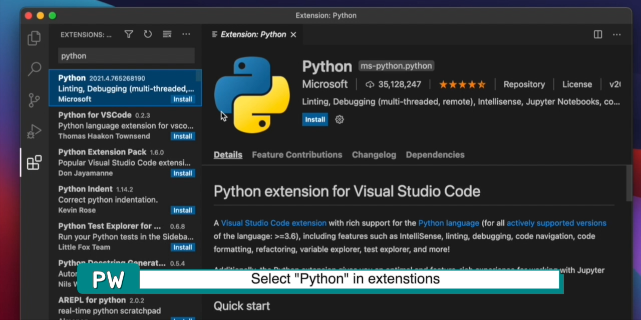 Extensions 탭을 누르고 python을 찾아서 Install버튼을 눌러줍니다. 이렇게만 해도 jupyter를 vscode에서 실행할 수도 있어서 꽤 유용합니다. 기회가 되면 자주 언급하고 싶네요.