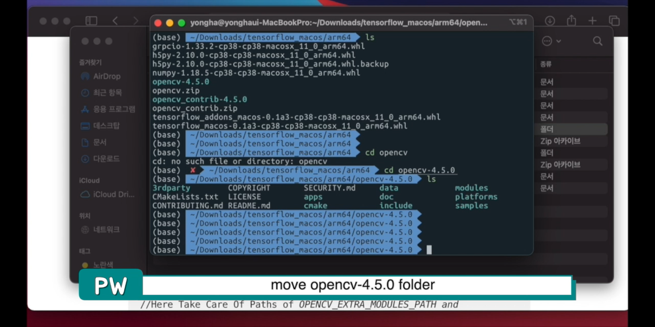 이제 opencv-4.5.0 폴더로 이동하구요.