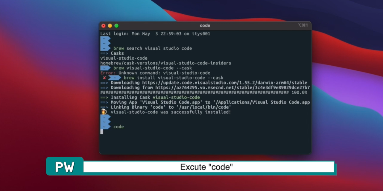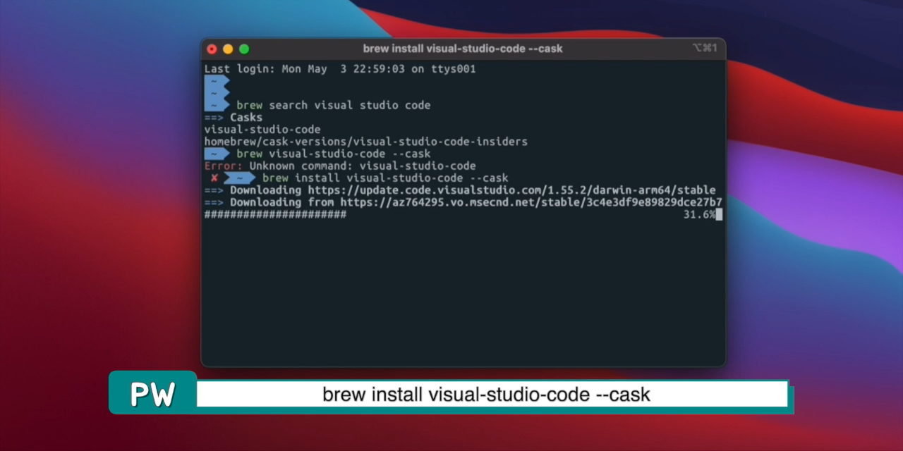 Application 폴더에 설치되도록 cask 옵션을 줘서 brew로 visual-studio-code를 설치합니다.