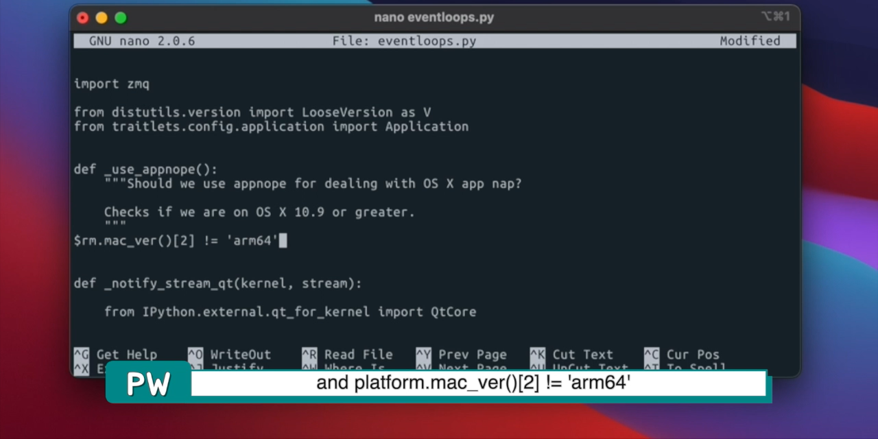 and platform.mac_ver()[2] != 'arm64' 라는 구절을 추가합니다.