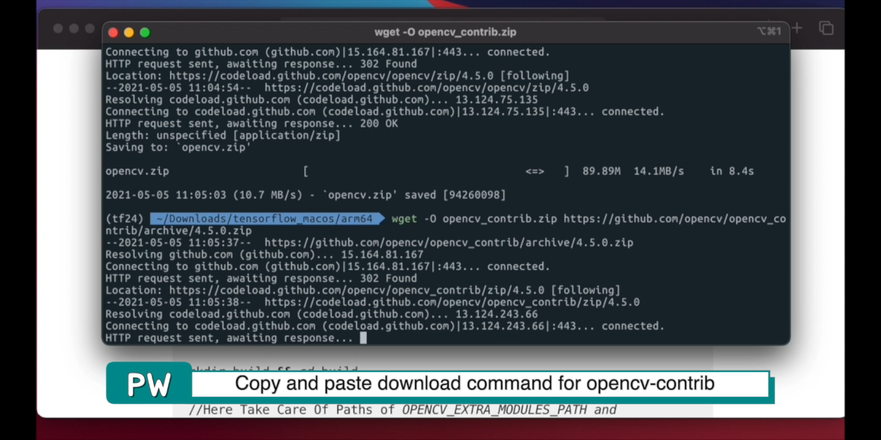 OpenCV 파일과 opencv-contrib 파일을 wget으로 받습니다.