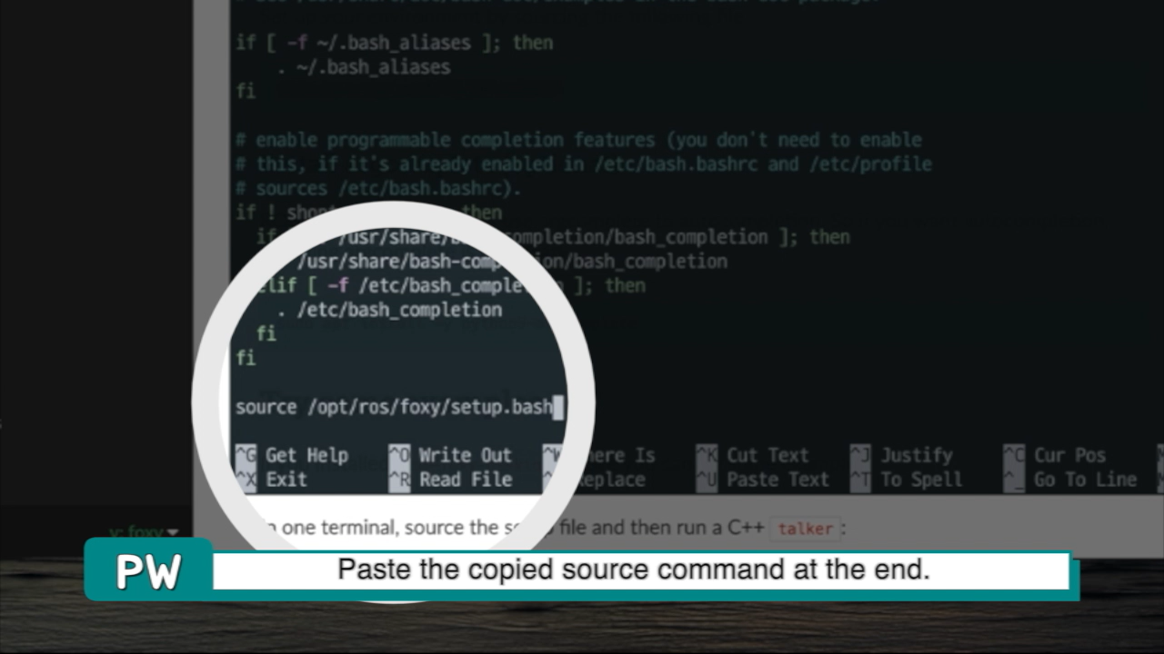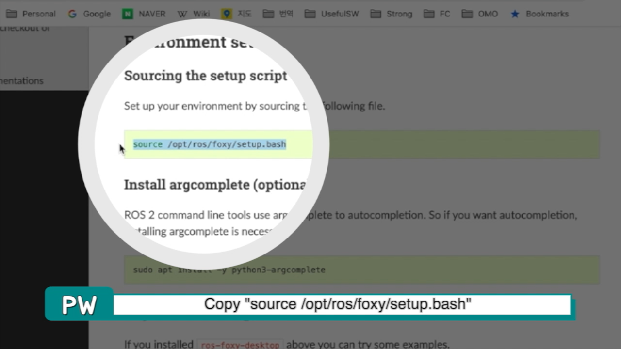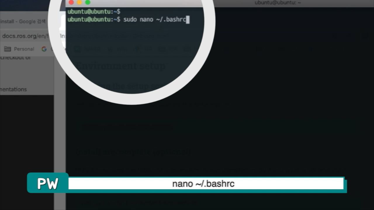 그리고 위에 보이는 setup.bash 경로까지 긁어서 복사합니다.