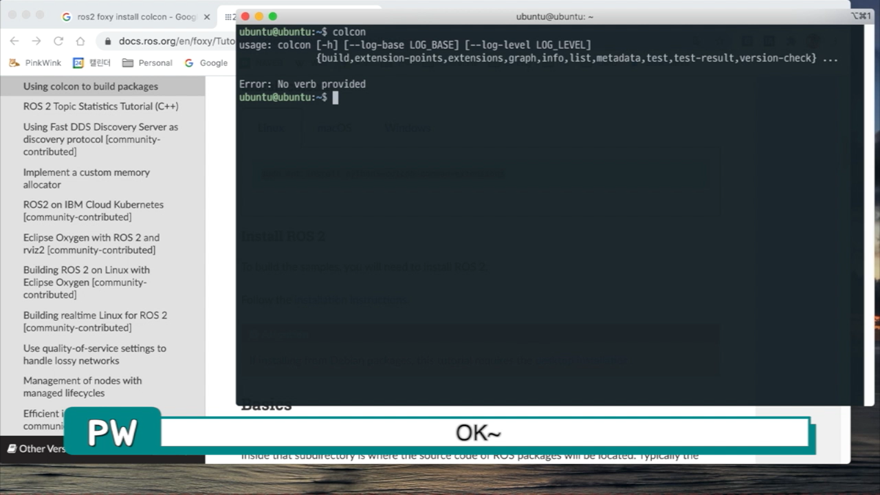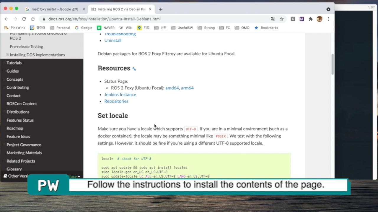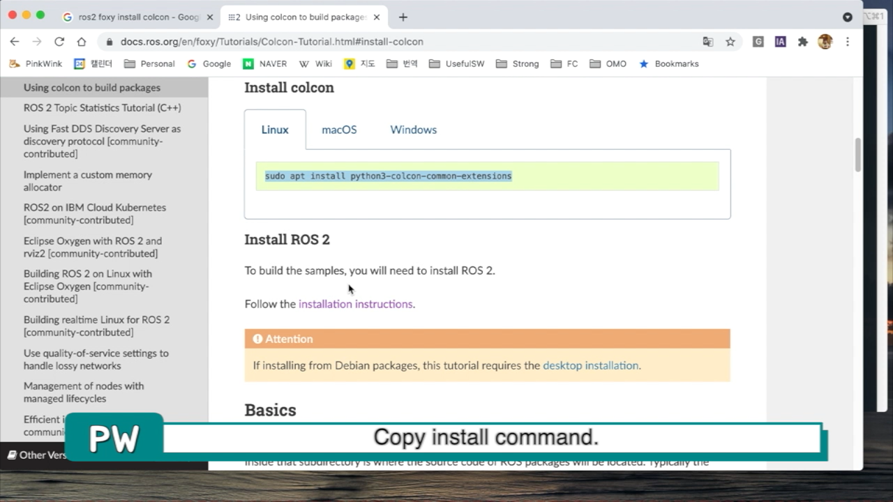 이제 구글에서 ros2 foxy install이라고 검색해서
