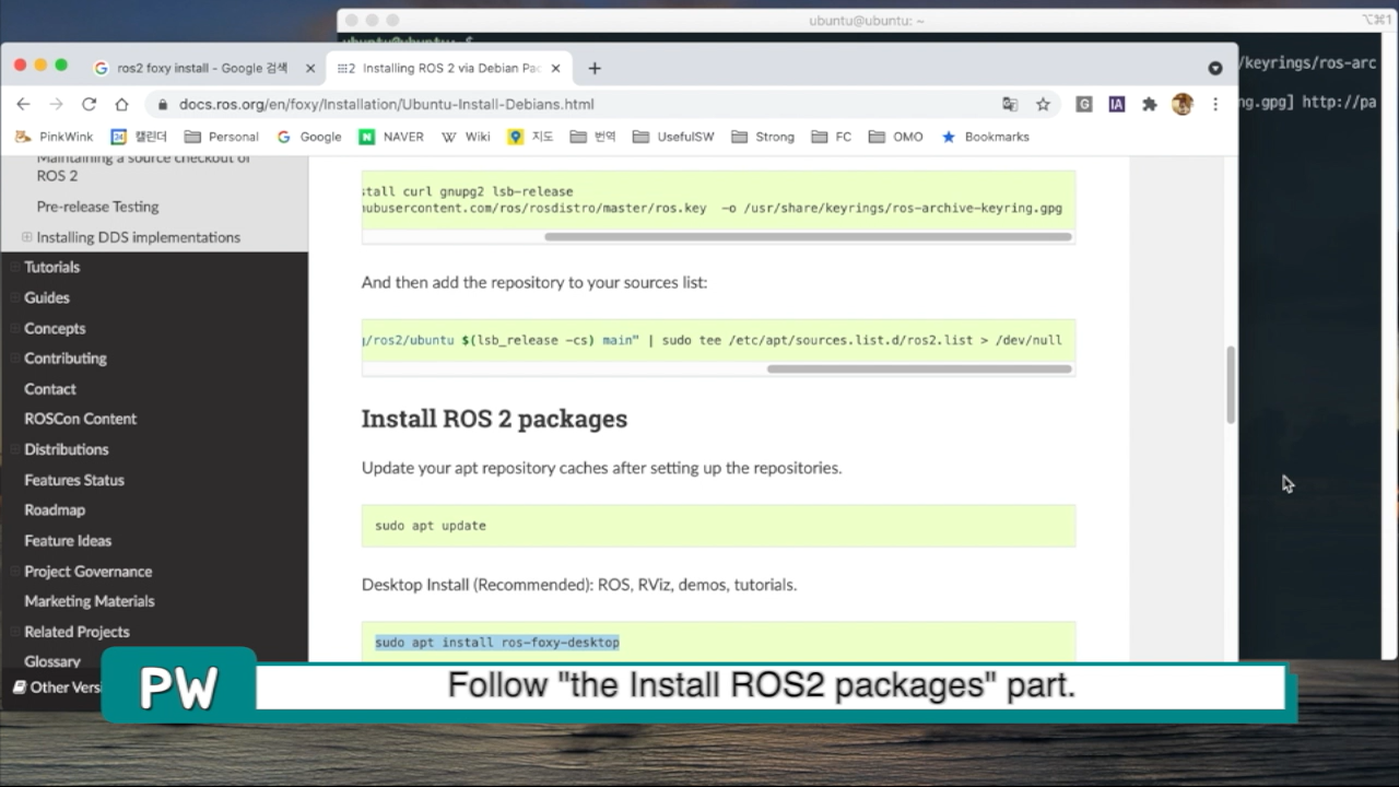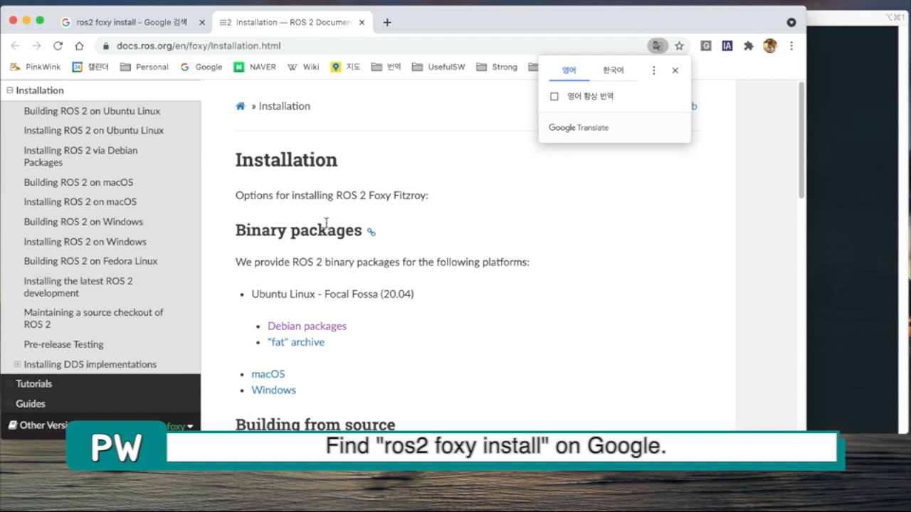 이제 구글에서 ros2 foxy install이라고 검색해서