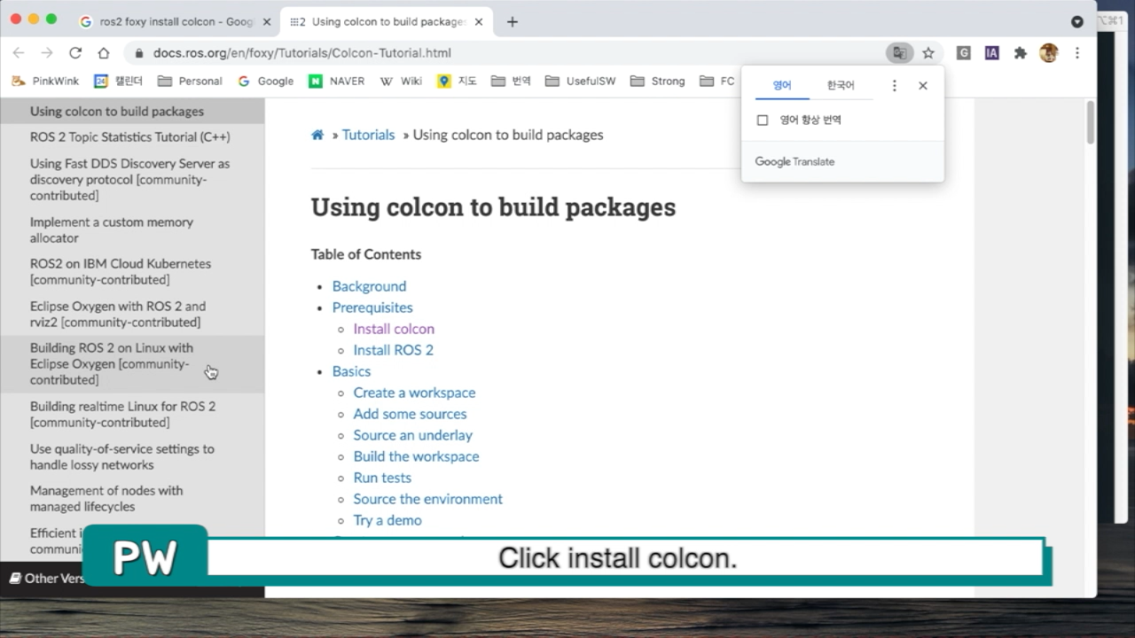 이제 colcon 설치페이지를 찾아서~