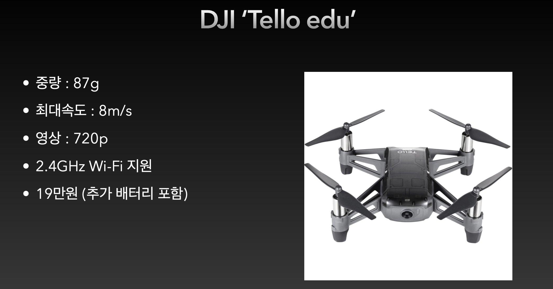 이번에는 제가 진행하는 수업의 수강생 중 한 팀이 시도한 프로젝트를 소개하려고 합니다. 원래 딥러닝 수업이었는데 본인들이 드론에 관심이 많아서 드론을 자비로 구매한 후 프로젝트를 진행했습니다.