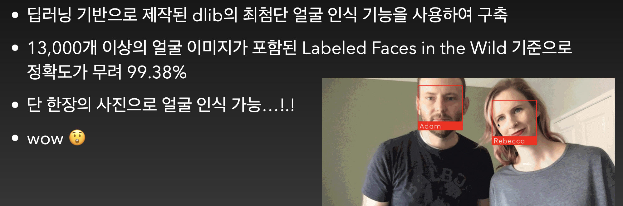 Open 소스인 얼굴 인식 기능도 테스트를 했구요.