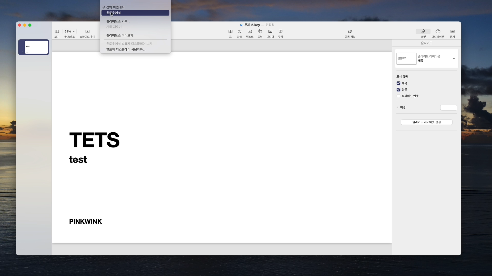 화면 상단 메뉴바에서 슬라이드쇼를 선택합니다.