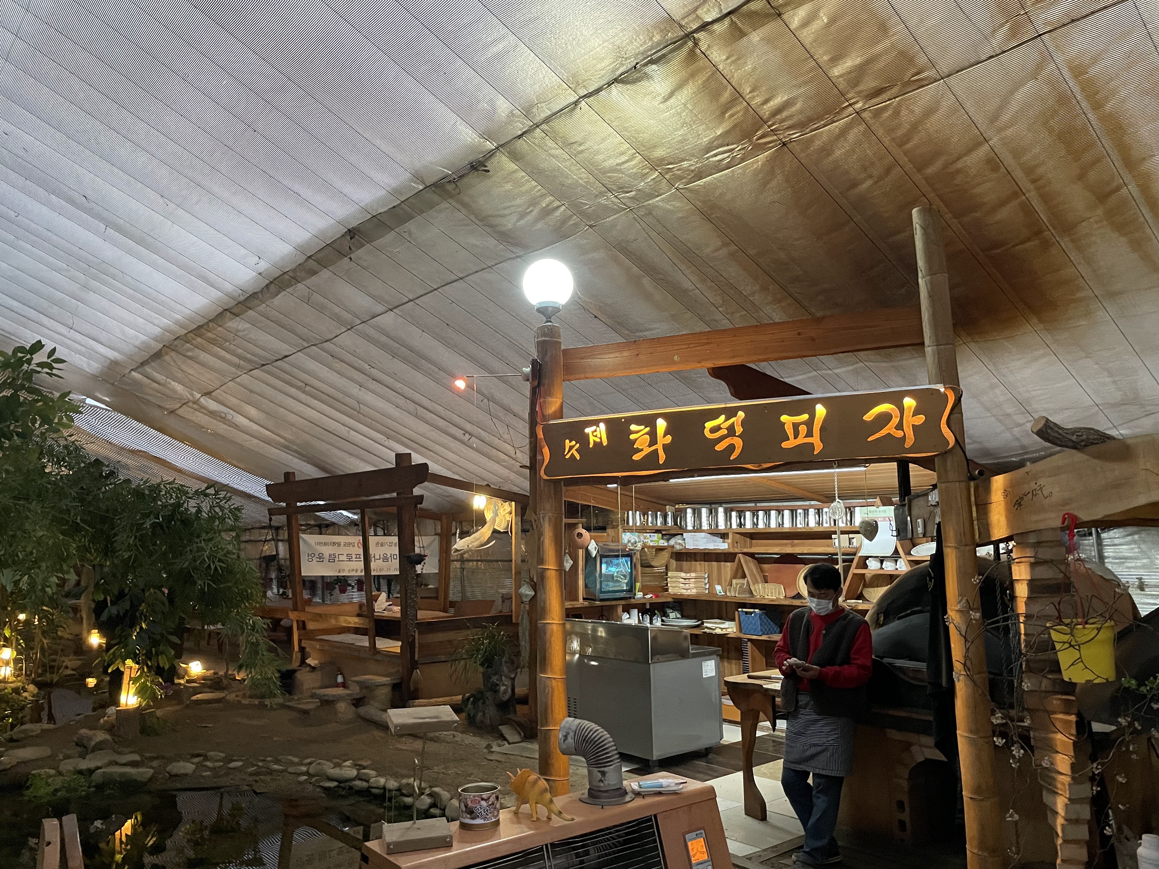 아까 그 장작들은 화덕피자에도 사용되는듯 하지만, 저렇게 각 정자에 바닥을 따뜻하게 하는 구들장을 데우는데 사용하더군요.