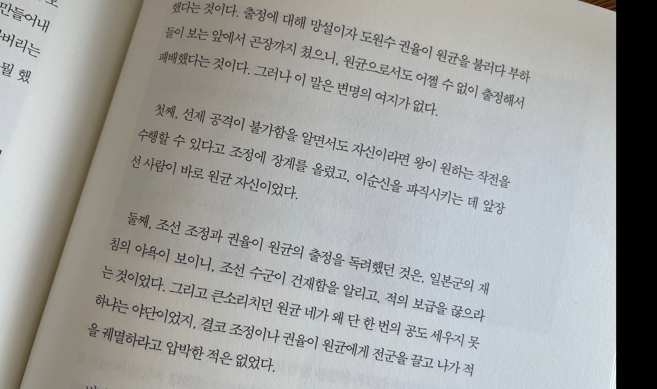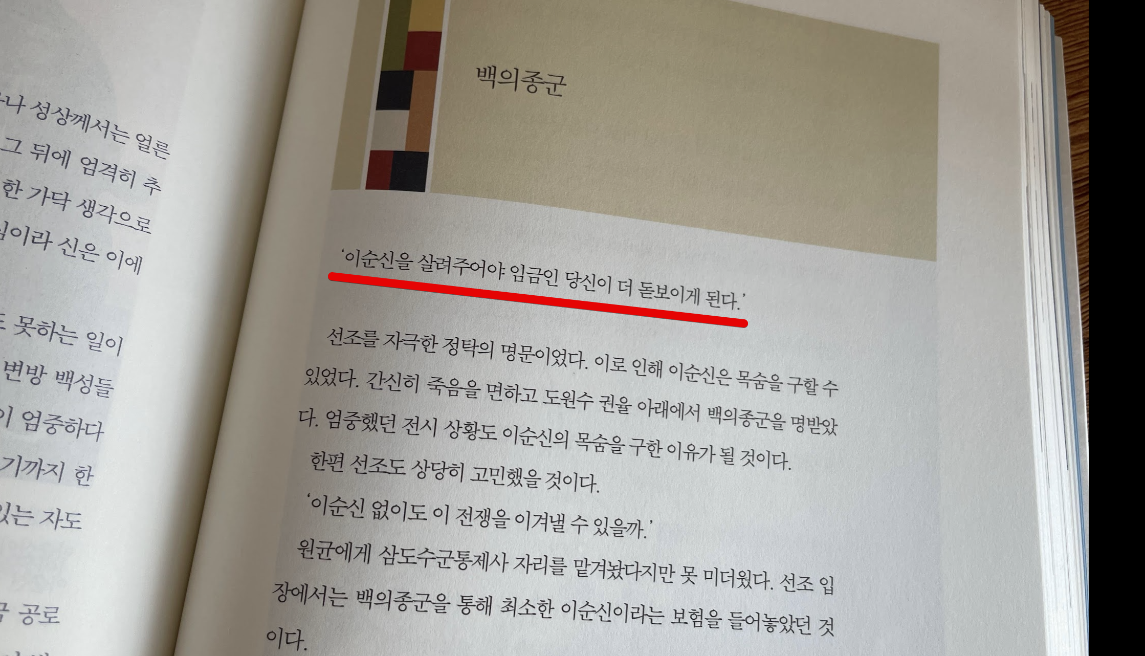 물론 원균만큼이나 무능력의 끝판왕으로 보이는 선조 임금도 책을 읽으면서 참 화나는 부분입니다. 사실 위 사진의 백의 종군 부분부터 저는 이 책 읽는 것을 한 일주일 멈추었었습니다. 저런 무능한 동료와 왕을 두고 어찌 저리도 고통을 받는지... 하는 생각에 더 진도를 나가지 못하고 책을 잡지 못했었습니다ㅠㅠ.