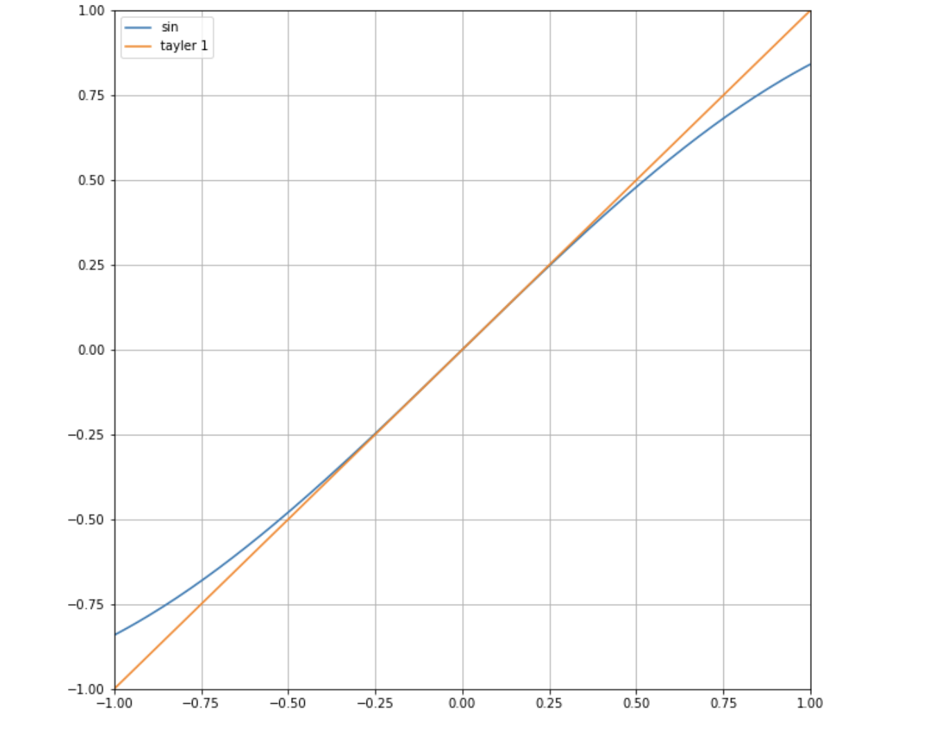 0부근에서는 정말 비슷한 값을 가지는것을 알 수 있습니다. 동작점 부근에서 선형 근사화를 해도 괜찮을 것 같다는 생각이 드시나요. 이번에는 3번째 미분항까지 진행한것도 함께 그려보도록 하겠습니다.