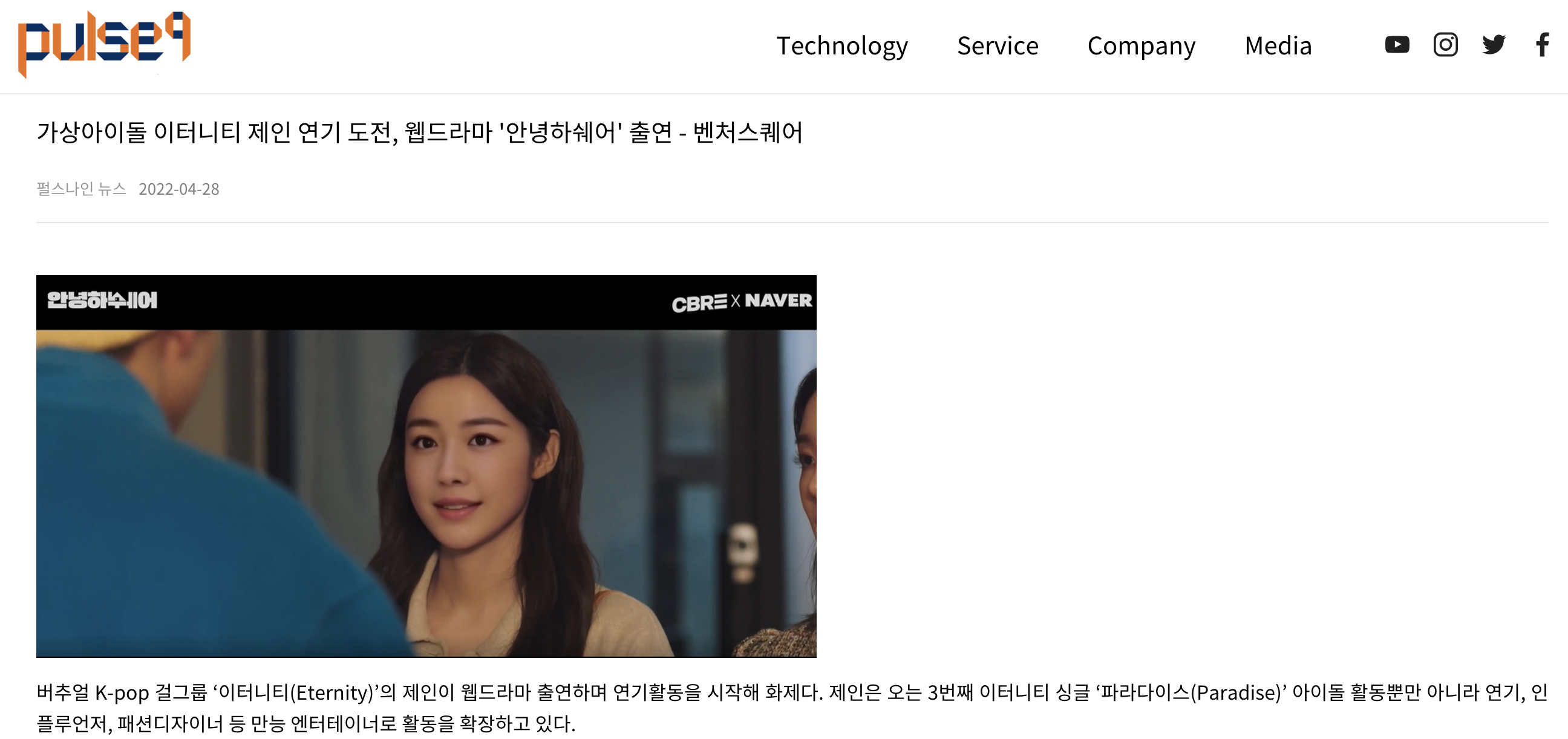 또 멤버중 한 명인 제인은 웹드라마에 출연까지 했다고 하네요.^^ K-Pop의 소식을 전하는 한 매체에서도 이터니티를 소개하는 글도 보입니다.