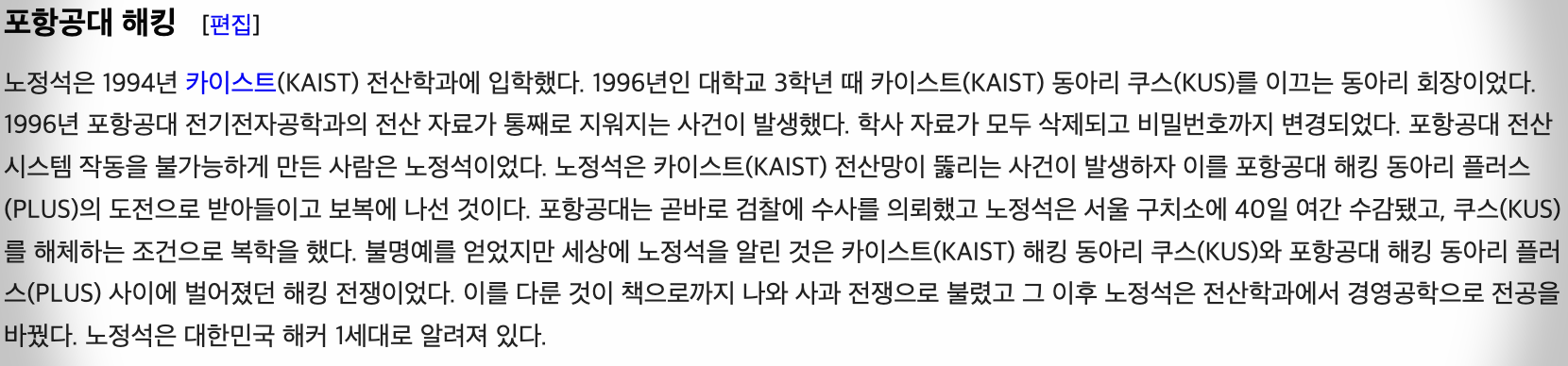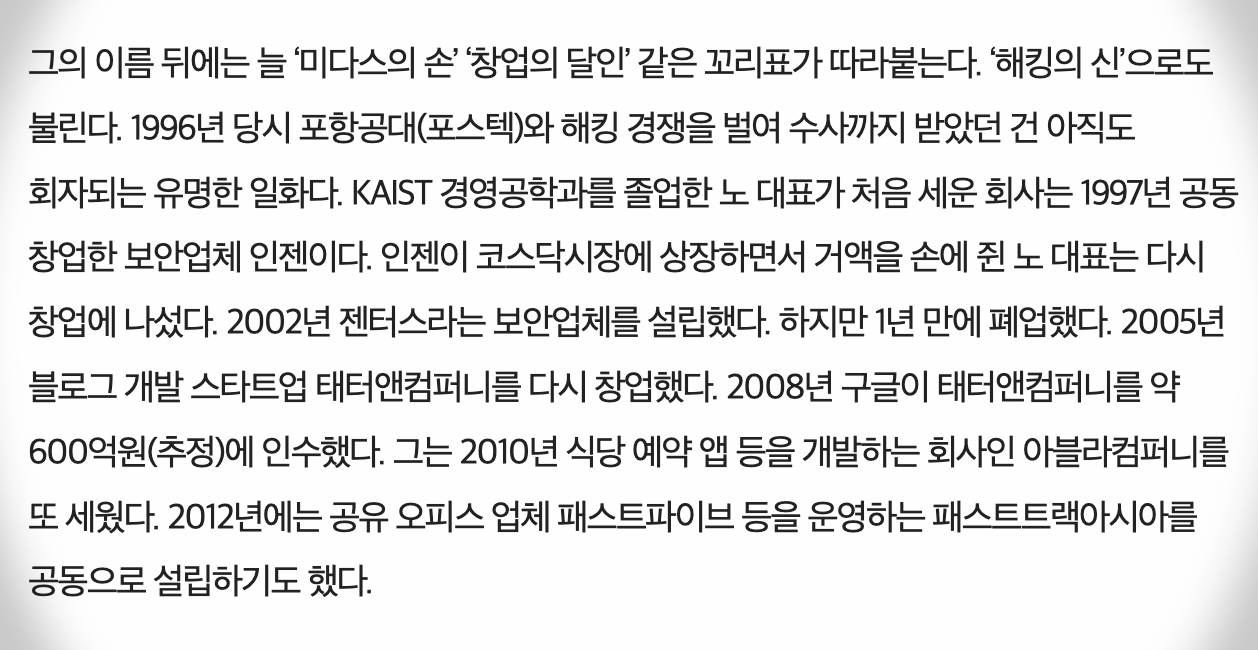 IT 관련 여러 소식을 전하면서 위키 페이지를 가지고 있는 해시넷에서는 노정석 대표님의 일화를 하나 소개하고 있습니다.