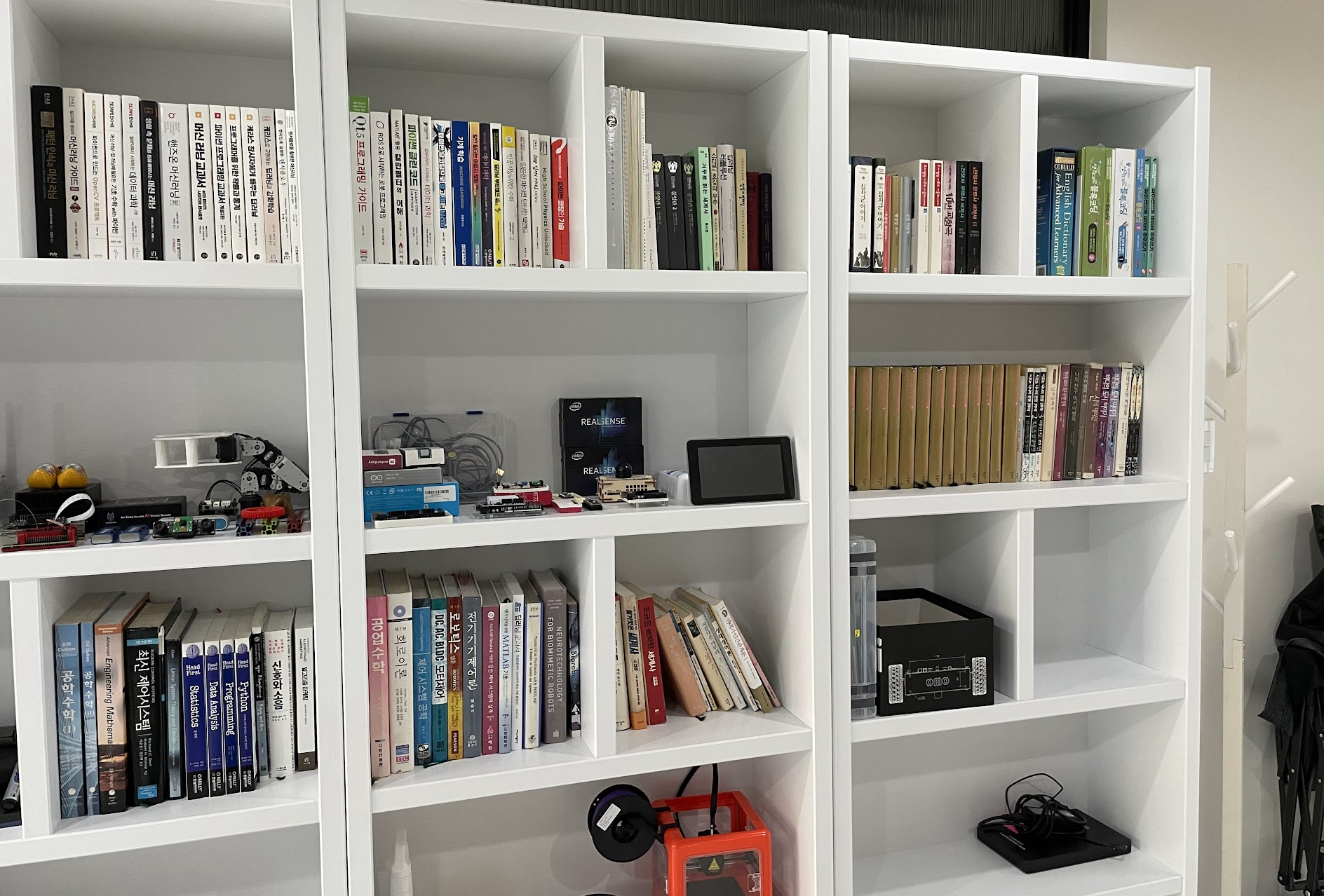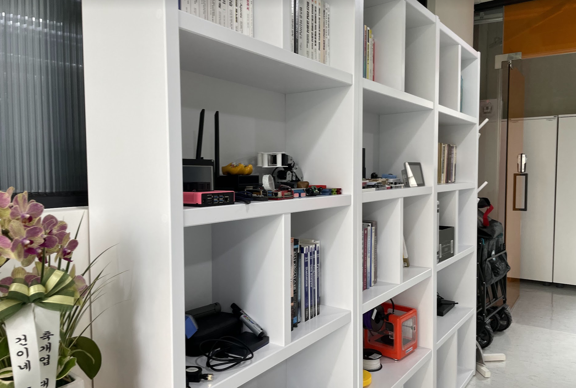 그 뒤로 책장이 있네요. 제가 사무실에 책과 제 개인적인 개발 도구와 개발 품들을 많이 가져다 놓는데요. 한 때 저의 입사 조건이 책장 두 개였던 적도 있습니다.^^