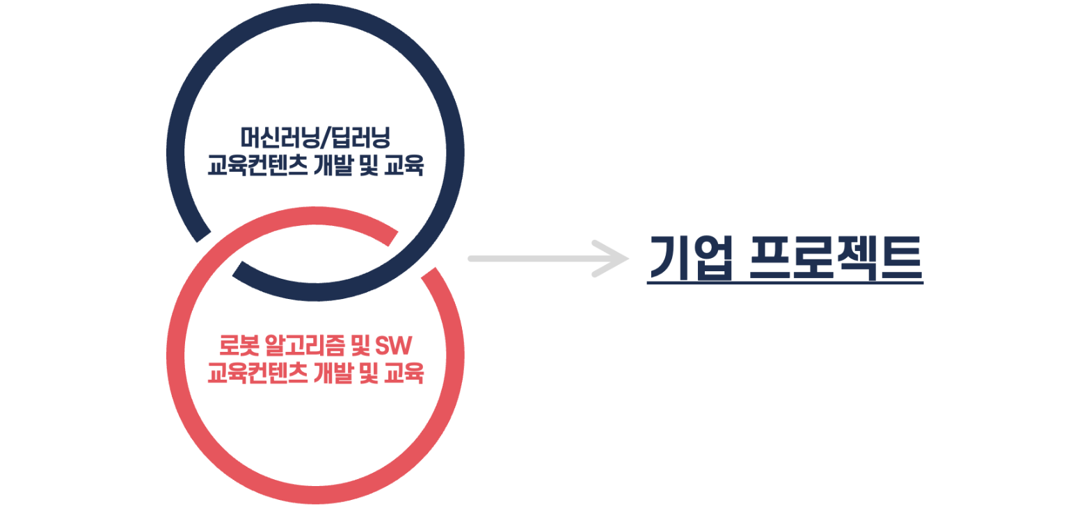 먼저 로봇과 딥러닝 등을 교육하는 교육컨텐츠를 개발하고 직접 교육을 수행하며, 그 결과 - 여기서 그 결과는 바로 수강생입니다. 수강생들과 기업 프로젝트를 수행하는 것입니다. 여기서 기업 프로젝트는 흔히 수강생을 위한 경험을 위한 프로젝트의 느낌이라기 보다는 처음부터 하나하나 배운 수강생으로도 직접 기업이 필요로 하는 프로젝트를 수행할 수 있다는 것을 증명하고 싶어서 입니다.