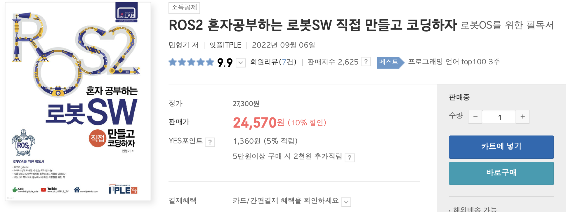 ROS2 기초 책을 집필하고 2022년 9월 6일에 출판을 했습니다. 이 책은 부족함은 많지만, 제가 놓치지 않을려고 노력했던 것은 많은 수업을 통해 처음 ROS를 접하는 사람들이 어디서 힘들어하는지를 파악한 것을 파악으로 어떻게든 쉽게 접근하게 하려는 것이었습니다.