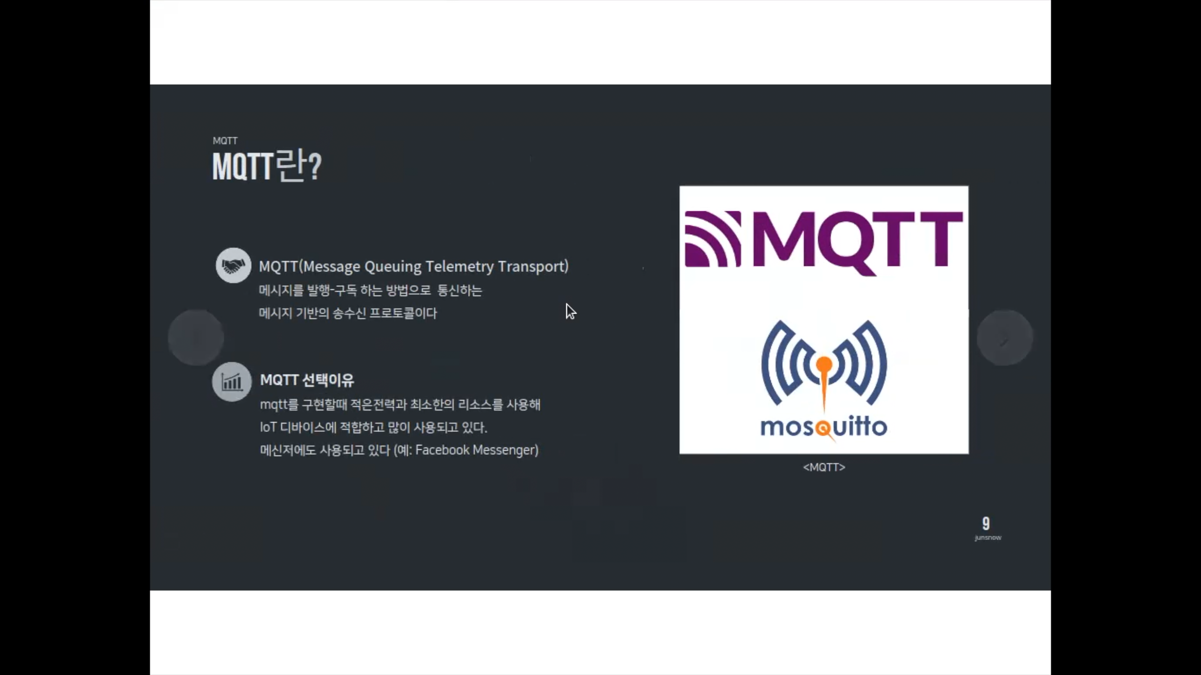 저렇게 여러 센서와 구동계를 가지고 앱과 연동하기 위해서 데이터를 주고 받는 것에 대해 고민해야할 때가 있습니다. 이것을 그냥 raw coding을 해도 되지만, 또 뭔가 구조적으로 고민하는 경우도 있습니다. 스마트 주차장 프로젝트때 소개한 것 처럼 로봇이 아니어도 이런 데이터 통신관련 아키텍쳐에 ROS를 사용하는 것도 한 방법입니다. 그런데 또 한 편으로는 MQTT라는 아이도 있습니다. 비록 영상이나 3D 데이터 등을 다루지 않고, 그저 간단한 메시지를 대상으로 하지만 꽤 유용합니다.