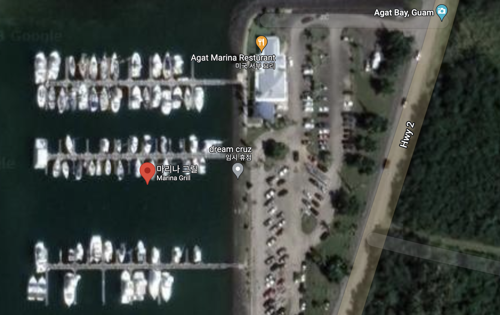 위 괌 지도에서 오른쪽 위 화살표 지역이 괌의 중심가라면 왼쪽 아래 화살표가 마리나 그릴이 있는 위치입니다. 운전을 해도 밥 한끼 먹으러 가는 것으로는 조금 먼 길인데요. 마리나 그릴을 가기 좋을 때가 있습니다.